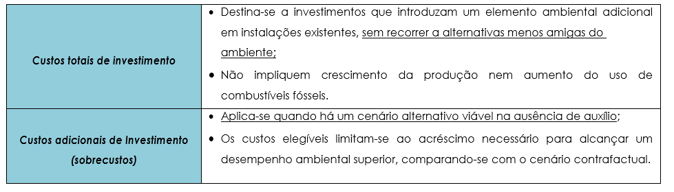 São considerados elegíveis os investimentos que promovam a redução de emissões e a descarbonização, incluindo, entre outros: