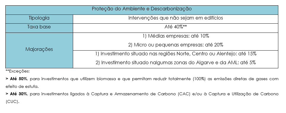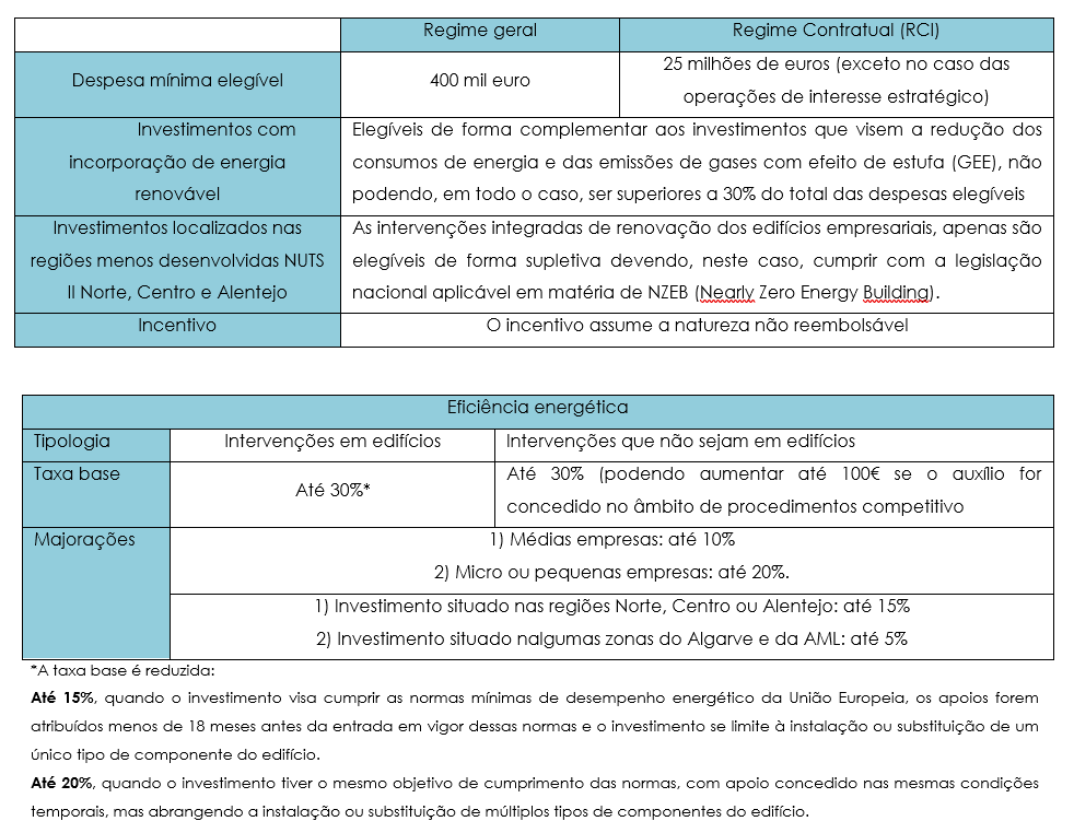 - Não são elegíveis apoios para cogeração nem para equipamentos movidos a combustíveis fósseis, incluindo gás natural.